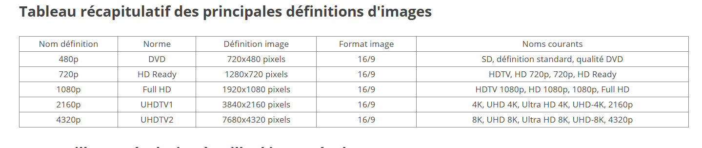 Depuis l'apparition des premiers téléviseurs à écran plat, que de progrès techniques accomplis ! La résolution très faible des tout premiers modèles a successivement laissé place aux modèles HD Ready 720p (1366 x 768 pixels, HDTV) puis Full HD 1080p (1920 x 1080 pixels, HDTV 1080p) pour atteindre aujourd'hui un peu plus de 8 millions de pixels avec le format UHD 4K (Ultra Haute Définition) dont la résolution est de 3840 x 2160 pixels, est même 33 millions de pixels sur les téléviseurs UHD 8K (7680 x 4320 pixels).
