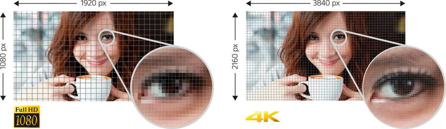 Pour une même taille d'image, la résolution UHD 4K offre 4 fois plus de pixels que la résolution HD 1080p, avec à la clé beaucoup plus de détails.